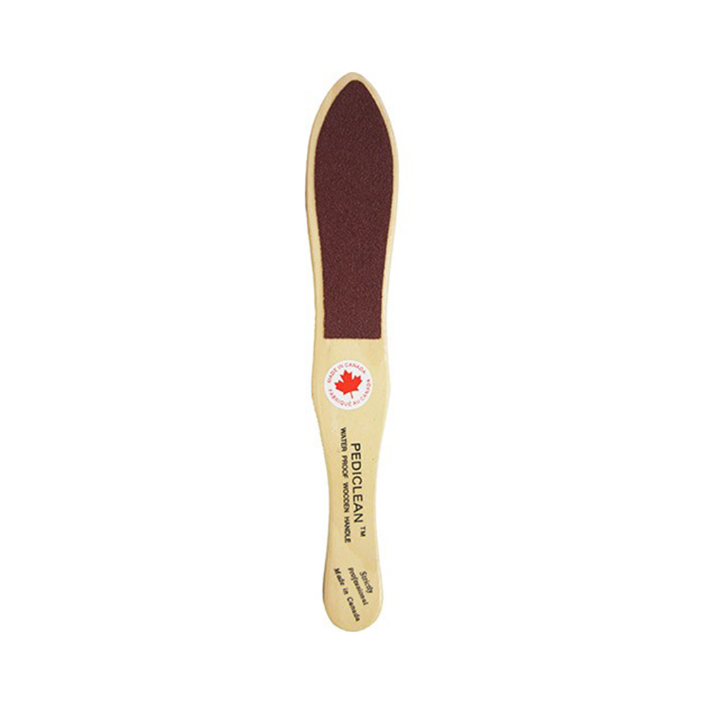 Two sided coarse – grit 60/80. For best results use the Coarse Pediclean to break down hard callus and then follow up with the Medium Pediclean to smoothen and even out skin tissue. Pediclean files are fully sanitizable. Wash in warm soapy water, rinse, then sanitize using appropriate methods. MADE IN CANADA
